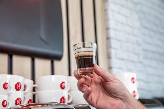 Examine the espresso, the crema should be 3-4mm and a thick, golden, hazelnut colour. Look for flecks of light and dark which some barista’s call “the tiger skin”. If there is no crema, it’s not an espresso!