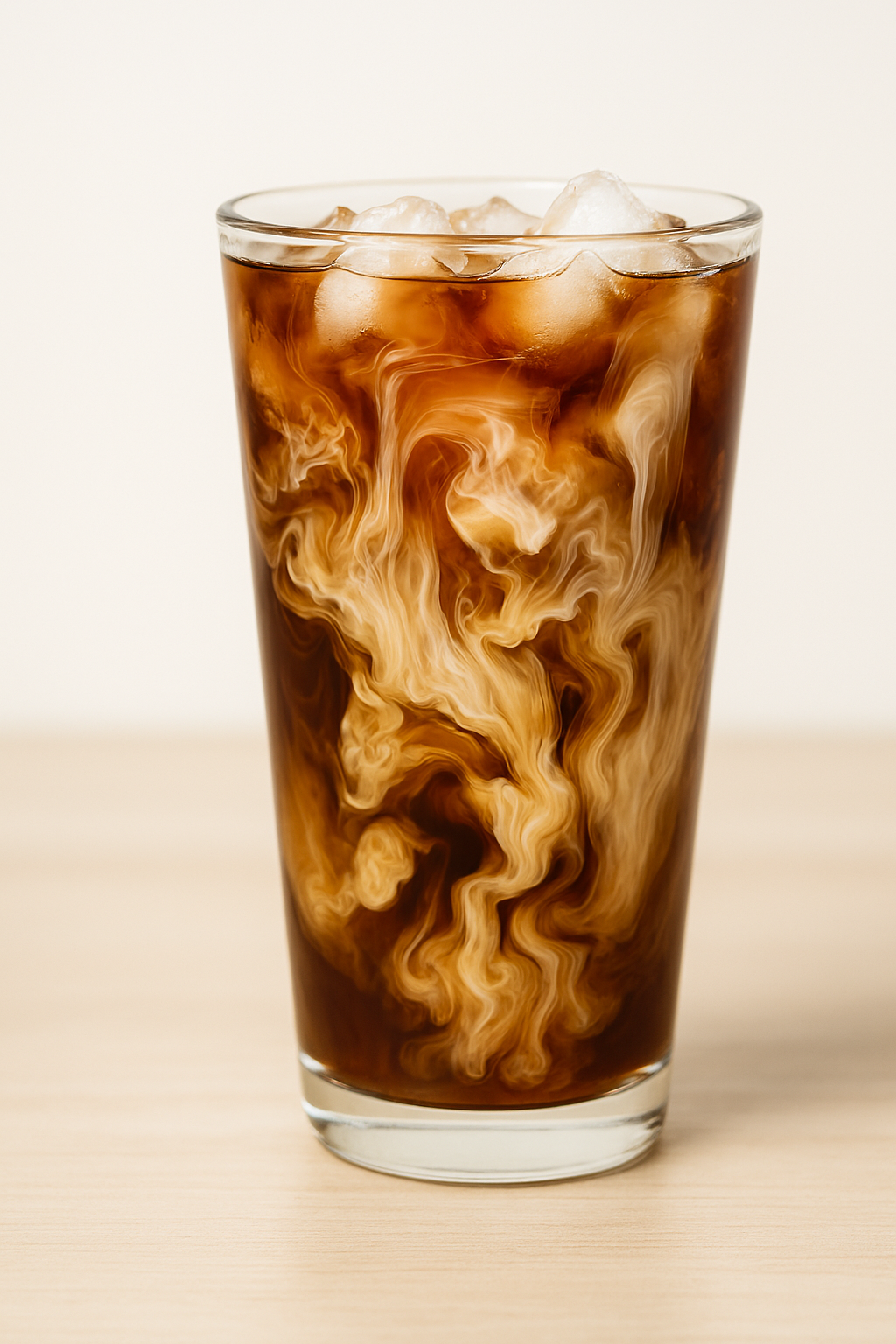 Kenco Smooth instant coffee150ml chilled almond milk4 ice cubesCaramel syrupTall glass