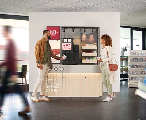 Our hassle free, easy to use Pret Express coffee station serves the same premium organic teas, slow roasted speciality coffees & fresh milk combinations that we sell in Pret stores.